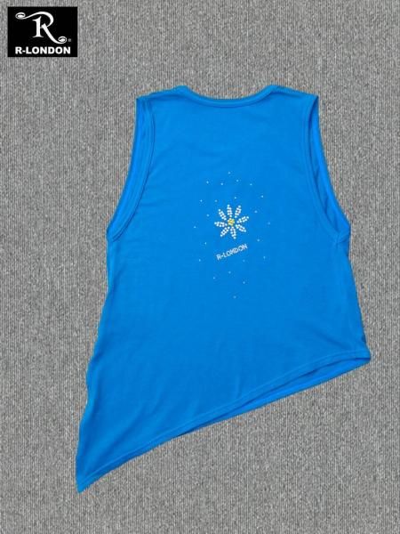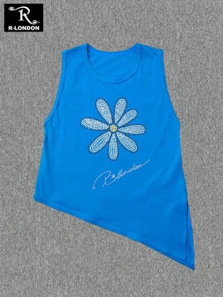 ◎新商品★R-LONDON★ デイジーフラワー アシンメトリースリットタンクトップ(ブルー)