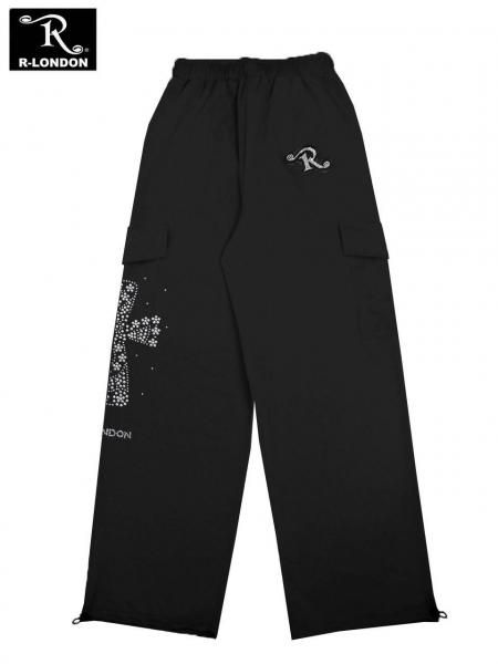 【送料無料】◎新商品★R-LONDON★ NEW フローラルクロス カーゴ (ブラック×ストレッチ)(シルバー)
